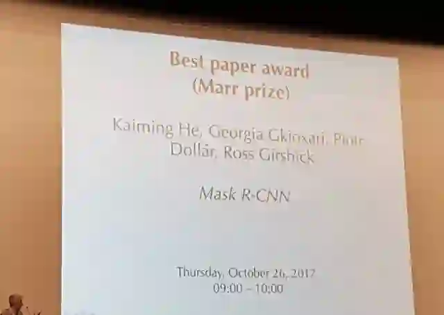 当地时间 10 月 22 日,两年一度的计算机视觉国际顶级会议 International Conference on Computer Vision(ICCV 2017)在意大利威尼斯开幕。今日,大会公布了本届 ICCV 的获奖论文,Facebook AI 研究员何恺明获得最佳论文奖,同时是最佳学生论文的作者之一。算上此前在 CVPR 2009、CVPR 2016 上的两篇「最佳论文」,何恺明现在已获得了四个最佳论文称号。