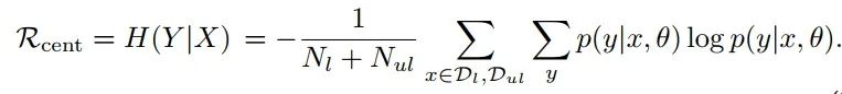其中,左边第一项为交叉熵,用来评估有标签数据的误差。右边第二项即为 entropy regularization 项,用来从无标签的数据中获取训练信号。