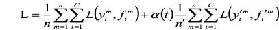 为了平衡有标签数据和无标签数据的信号强度,如上所示,算法在目标函数中引入了时变参数 α(t),其数学形式如下: