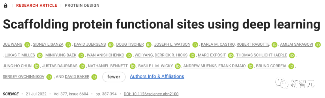 随后,来自华盛顿大学生物化学系的Jue Wang等人提出了两种深度学习方法来设计「预设定功能位点的蛋白质」,并将其成果发表在Science上。