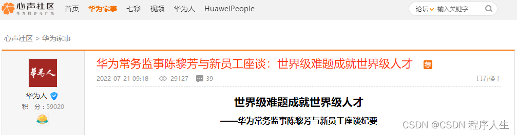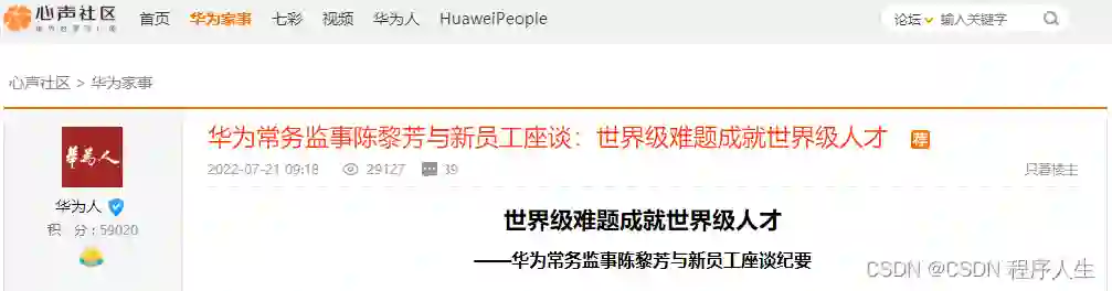 7月21日,华为心声社区更新了一则公司高管与新员工的座谈纪要,再次回应了此前“35岁危机”的传言。
