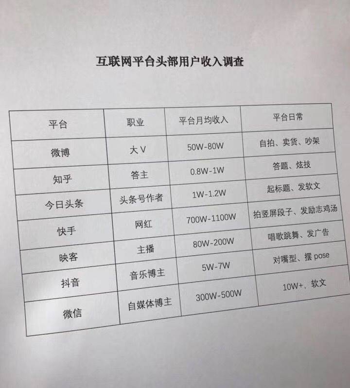 3. 网传互联网各平台KOL收入,知情者:不靠谱