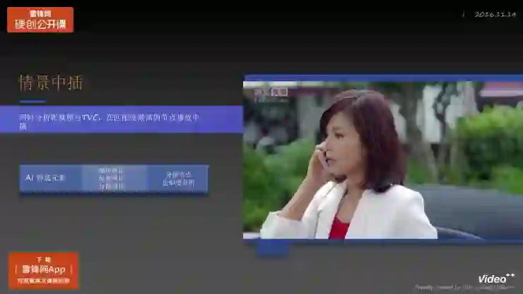 此外,“情境中插”也是与前面提到的案例相似的产品。不同的在于,其能同时分析影视剧与TVC,在匹配度最高的节点播放中插入广告。