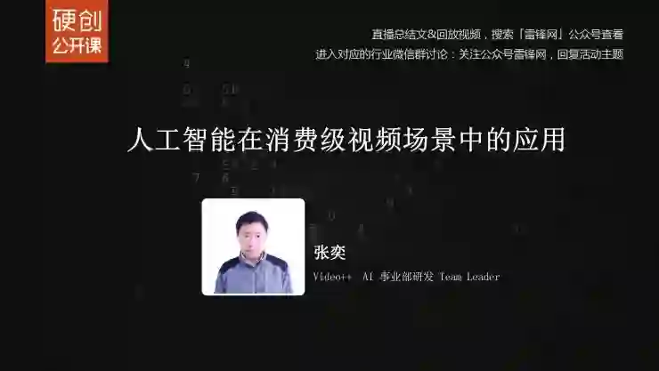 雷锋网AI掘金志邀请到了Video++人工智能事业部研发Team Leader张奕为大家讲解人工智能在消费级视频场景中的应用。(后台回复关键词“视频广告”可下载全版PPT。)