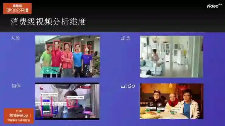 人工智能在消费级视频中最重要的功能是目标追踪、检测和识别。与工业级视频相比,消费级视频最大的区别在于其需要编辑、策划和互动,这是我们可以介入的地方。像娱乐综艺、在线直播等还有很大的剩余价值有待开发。利用人工智能技术对物体、人脸、场景、品牌进行系列结构筛选后,就能得到这个视频里在何时何地出现了什么人物、物体、场景和品牌的信息。然后再在这一基础上对物体进行结构化,就能产生极大的商业价值。