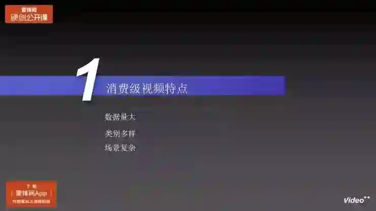 再来看消费级视频的第二个特点。其实其本身可分为很多种类,如电影、综艺、体育和广告,还有这两年非常火的直播、短视频等等。这些子类的消费者视频的内容形式之间又存在着很大的差异,所以也给不同子类的通用算法提出巨大的挑战。