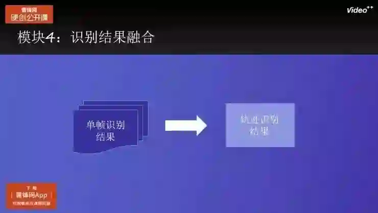 识别结果的融合策略也有很多。简单的有投票策略,即将尾帧的识别结果是为一票,识别结果票数最高者则为轨迹的最终识别结果。也有用神经网络来实现这一融合,可以训练一个时间维度上的神经,将每一帧识别出的特征向量作为网络的输入,经过在时间维度上的一系列的参数变换得到最终的特征向量。