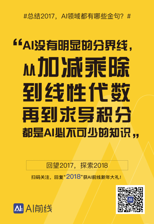 2018会不会对你好一点儿我们不知道,但是只有你自己的努力可以让你的生活更加美好!希望在你成长的道路上,AI前线能够一直陪伴!