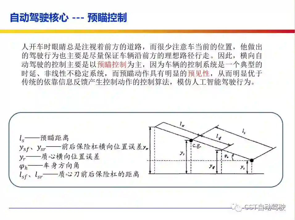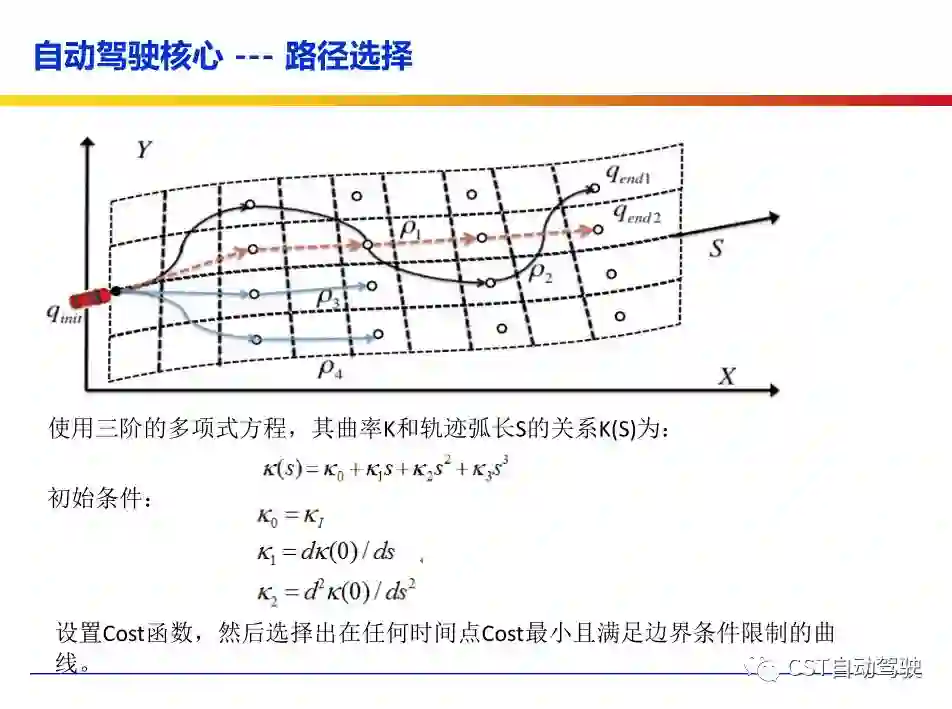 控制系统任务是将行为决策的宏观指令解释为带有时间信息的轨迹曲线,从而控制车辆的速度与行驶方向,使其跟踪规划的速度曲线与路径。具体而言,控制执行技术是解决在一定的约束条件下优化某个范围内的时空路径问题,包括:1)车辆在一定时间段行驶轨迹(位置信息);2)整条轨迹的时间信息和车辆姿态(到达每个位置的时间、速度、加速度、曲率等)。