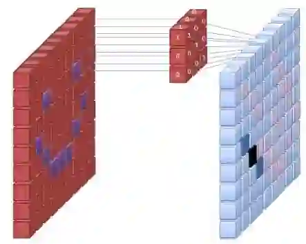 这意味着对于应用于全彩色图像的尺寸为3的滤波器,其规模为3×3×3。对于该滤波器覆盖的每个像素,神经网络将滤波器的值和像素本身的值相乘以获取像素的数值表示。然后,对整个图像完成上述过程以实现完整的表示。根据参数“步幅”,滤波器在图像的其余部分滑动。该参数定义了在计算当前位置的值之后,滤波器要滑动的像素数。CNN的默认步幅取值为2。