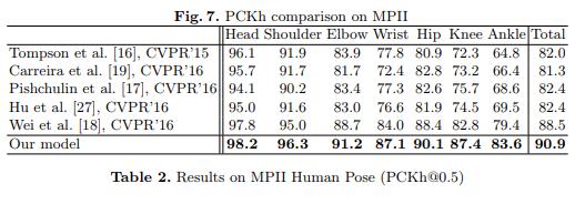 介绍了一种新颖的CPM框架,该框架显示了MPII,FLIC和LSP数据集的SOTA性能。