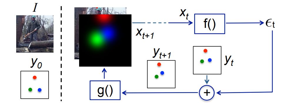 输入由图像I和前一输出yt−1的表示组成。请记住,这是一个迭代的过程,相同的输出在不断地迭代过程中会慢慢地得到改进。