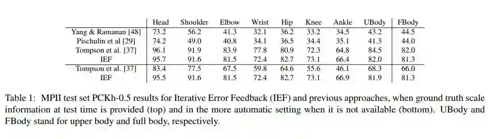 这是一篇内容丰富并非常复杂的论文,我试图简单地总结一下,希望不会遗漏太多。整个工作的思想非常直接:预测当前估计的错误并迭代纠正。引用作者的论述,他们不是一次性直接预测输出,而是使用自校正模型,通过反馈误差预测逐步改变初始解决方案,这个过程称为迭代误差反馈(IEF)。