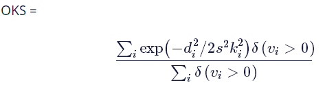 简而言之,OKS扮演的角色与IoU在对象检测中扮演的角色相同。它是根据人的尺度标准化的预测点和标准真值点之间的距离计算出来的。更多详细信息,以及标准平均精度和召回分数在论文中皆有报告:A P50 (AP at OKS = 0.50) A P75, A P(the mean of A Pscores at 10 positions, OKS = 0.50, 0.55, . . . , 0.90, 0.95; A PM for medium objects,A PMfor large objects, andA R(Average recall) at OKS = 0.50, 0.55, . . . , 0.90, 0.955。