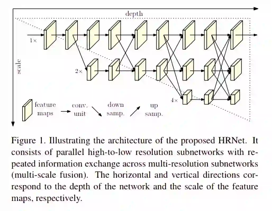 该架构从作为第一阶段的高分辨率子网开始,逐步逐个添加高到低分辨率的子网,以形成更多的阶段并连接并行的多分辨率子网。