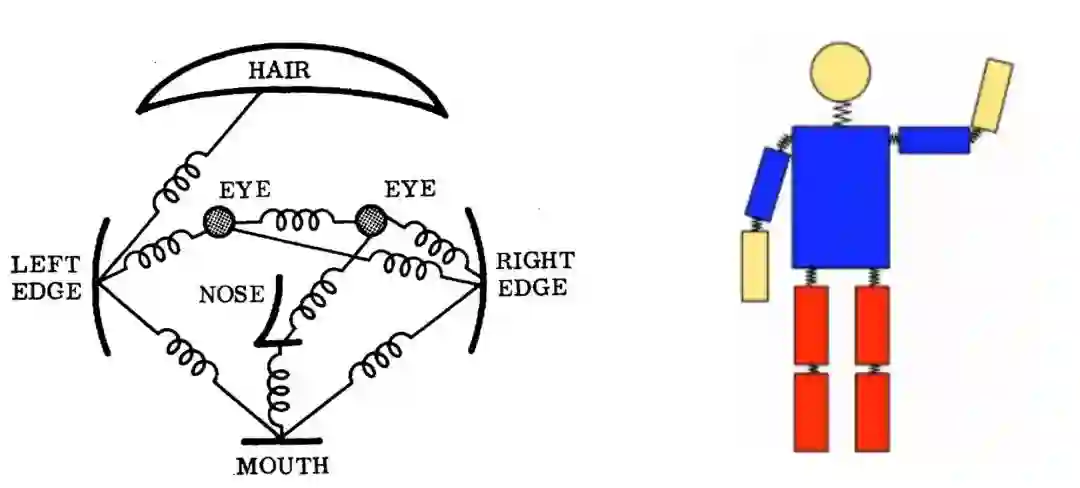 关节姿态估计的传统方法是使用图形结构框架。这里的基本思想是,将目标对象表示成一堆“部件(parts)”的集合,而部件的组合方式是可以发生形变的(非死板的)。
