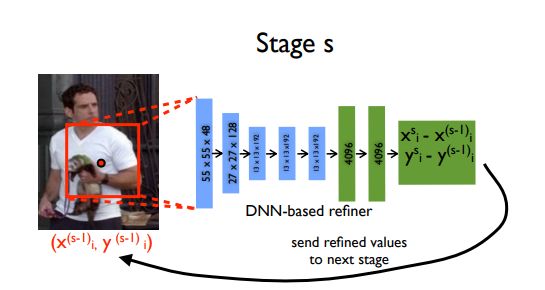 他们还使用一系列这样的回归器来改进姿势估计并获得更好的估计结果。这种方法所做的一件重要事情是以整体的方式评估姿势,也就是说,即使某些关节是隐藏的,如果摆出的姿势是作为一个整体,也可以对其进行估计。本文认为,CNN很自然地提供了这种推理,并通过结果证明了其强大。