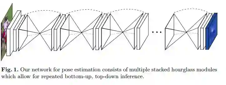 这是一篇具有里程碑意义的论文,它引入了一种新颖而直观的架构,并击败了以往的所有方法。它被称为堆叠式沙漏网络,因为网络包括池化和上采样层的步骤,这些层看起来像沙漏,并且这些被堆叠在一起。沙漏的设计是由于需要捕获各种规模的信息。