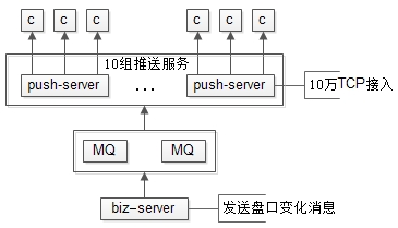 推送集群与业务集群之间,通过MQ解耦,推送集群只单纯的推送消息,无任何业务逻辑计算,推送消息的内容,都是业务集群计算好的