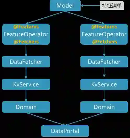 对于新特征,我们需要实现对应的FeatureOperator、DataFetcher。DataFetcher主要封装了Domain和DataPortal的关系。类似的,如果我们不需要以强类型的方式来保证代码的业务可读性,也可以通过优化框架省去DataFetcher和DataPortal的定制开发。