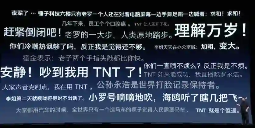 “一般发布会开场都是报喜不报忧,我们也尝试这找一些有关TNT的好评,但是我们找到的是这些。”