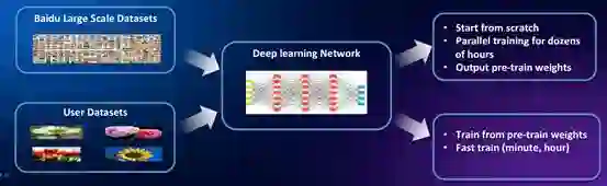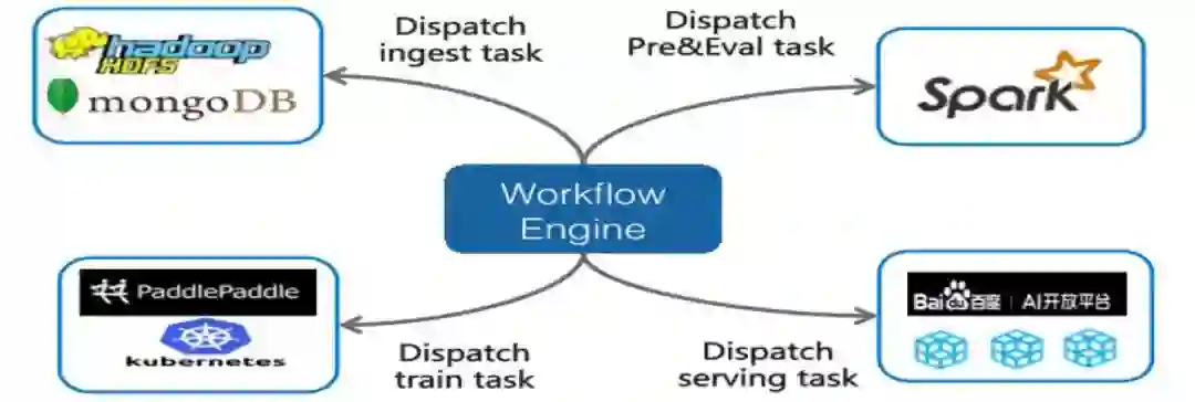 AI Workflow 是百度对机器学习从训练到上线构建的工作流引擎,它是一个将大数据成熟的工程系统与人工智能分布式模型训练相结合的引擎。它覆盖了从训练数据的存储,ETL(抽取、交互转换和加载)、模型训练任务的发起、训练集群资源调度、训练状态监控同步、模型自动部署、服务发布上线等全部环节,并实现了全自动流程。