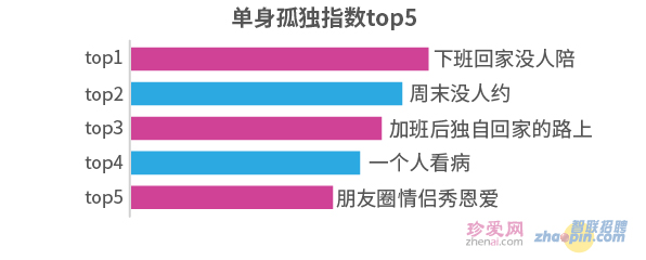 孤独是个人都存在的,在单身人士这尤其明显:“下班回家没人陪”成为击中所有单身狗的利剑,孤独指数满分;玩游戏、追剧成为了广大单身狗排遣孤单的首选;“一个人看病”和“朋友圈情侣秀恩爱”。可见,单身人士还能活着是多么不容易。