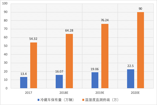 另一方面,如果每个冷藏车配备4个监测终端,每100m³冷库配备3个监测终端,每个商超门店冷柜配备1个监测终端,每个保温箱配备1个监测终端,监测终端将会出现千万级的市场。
