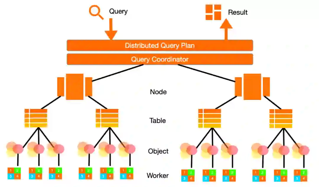 分析、控制和模拟是数字孪生系统的关键要素。传统系统很难针对大型建筑或大规模三维实体对象完成即时、快速拓扑分析计算。GanosBase基于云原生数据库PolarDB,建立了多级空间并行查询处理框架,支持intra-parallel (跨节点并行)、inter-parallel (节点内表级并行)以及obj-parallel (对象级并行)三种并行粒度,大规模多维空间数据分析处理效率提升至少一个数量级。