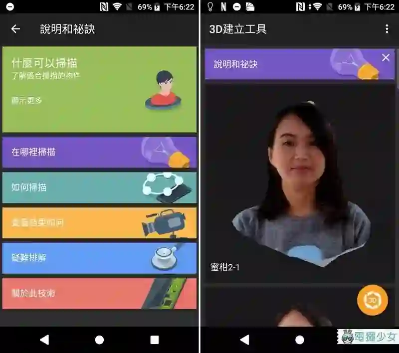 使用 3D 扫描前,非常建议大家将“说明与秘诀”都看完,里面有很简单又清晰的教学,3D 扫描原本就是一个拍摄门槛相当高的技术!!