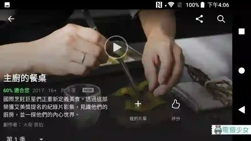 有阿,这次 XZ1 有一项值得关注的特点,如果最近跟蜜柑一样沉迷在怪奇物语 2 中,一定知道 Netflix 最近在推广 HDR 影片,HDR 影片拥有超高画质对比清晰的画面,看 HDR 的影片会有种“咦我的近视是不是痊愈了”的感觉,不过我截图给你看你也看不出来有多清晰,因为你的手机屏幕不支持 HDR 啦~(好呛