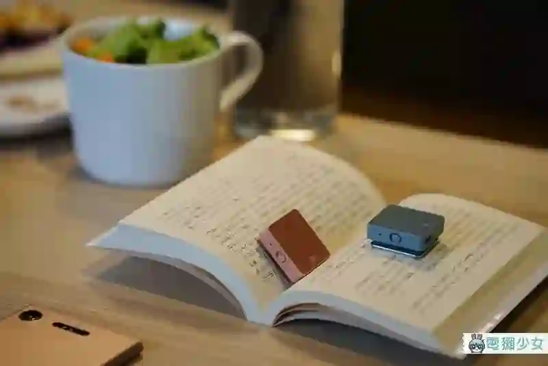 它背后有个小夹子能够夹在衣领或包包边缘,让你的耳机能够脱离手机,简单来理解就是“一组可通话的蓝牙耳机”,老实说蜜柑觉得有一团线缠在身上有点儿…不是那么理想,不过能够跟手机分开来其实也获得一定的自由度,算是相当微妙存在的设计产品,不亏是日本人的思考阿…微妙的实用度呢,但外型满分我超喜欢!粉蓝跟粉红的色系都很疗愈