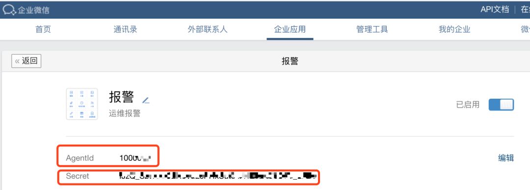 一:创建自建应用「报警」,然后用公司corpid和企业应用secret获取token,https://qyapi.weixin.qq.com/cgi-bin/gettoken?corpid=$corpid&corpsecret=$corpsecret