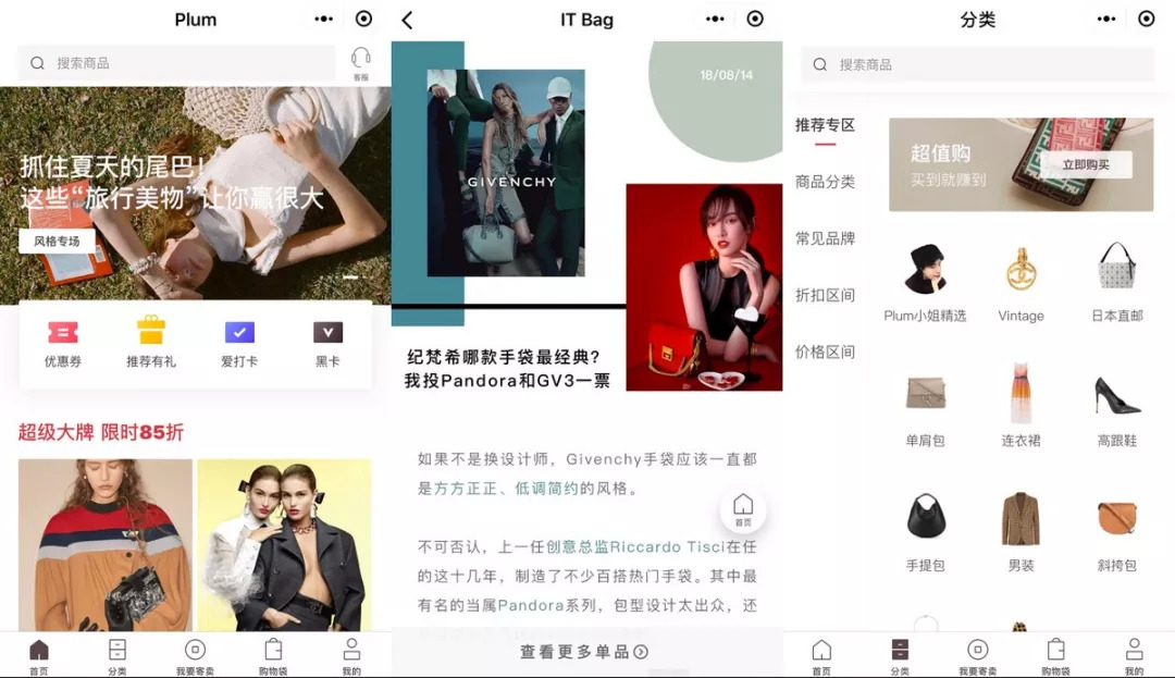 1、品类扩充。Plum 在上季度上线了男装频道,目前在品类上,整体仍以服饰、包袋、鞋为主。在徐薇看来,家居生活方式、母婴等和“时尚生活”相关的产品都能可以是 Plum 尝试的方向;