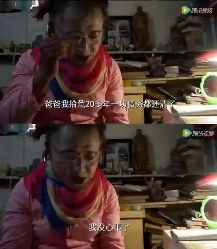 “爸爸,我拾荒20多年,一切债务都还清了,我没心事了。”