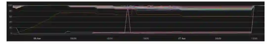 这张图显示了一个相对较大的 HBase 集群,每条线是集群中单个 Regionserver 的 Locality。在我们耗尽时间之前,我们花了大约 6 个小时,才慢慢将 Locality 提高到一个只有 85% 左右的峰值。几个小时后,发生了一起事件,使我们的部分工作毁于一旦,而按照集群的负载方式,我们要等到第二天晚上才能继续运行压实操作。