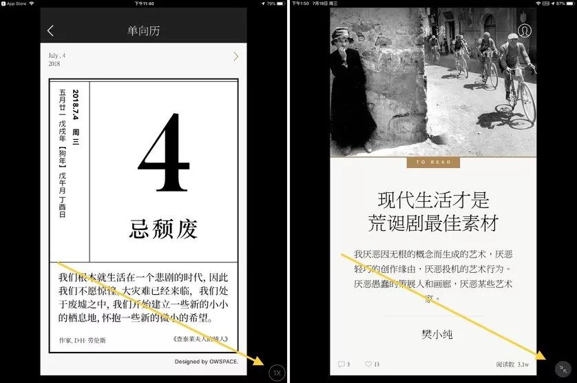 在用 iPad 使用 iPhone App 时,你可以选择以 iPhone 原生分辨率(现为 iPhone 6 尺寸)使用该 App,或者你可以选择使用 右下角的「1X」 按钮放大显示。现在该按钮变为了以箭头显示的缩放符号。