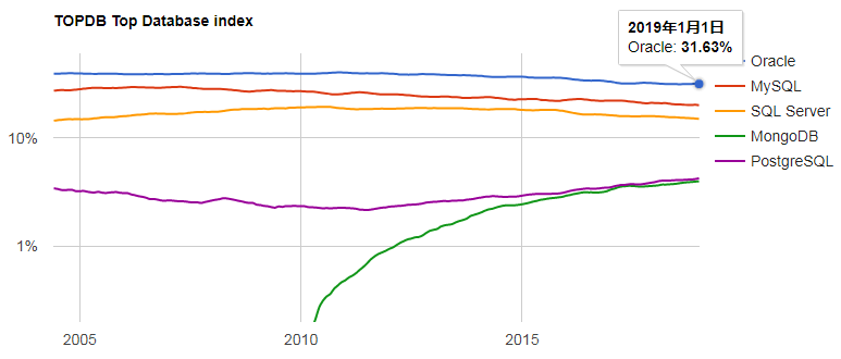 排名前五的分别是:Oracle、MySQL、SQL Server、PostgreSQL 和 MongoDB。