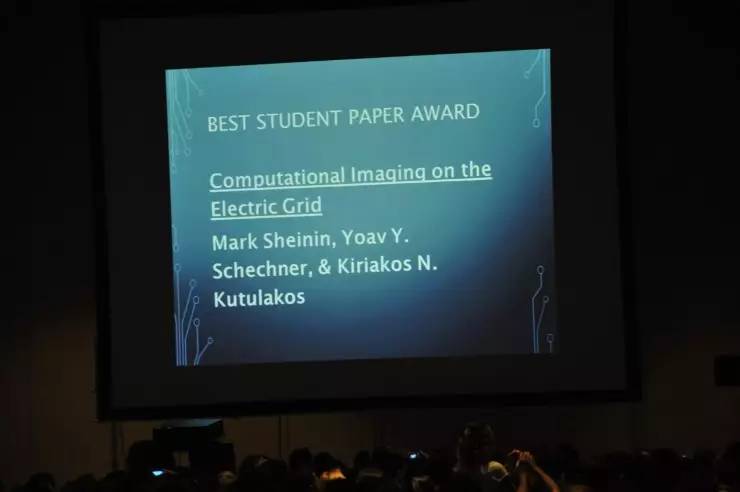 即《在电网上进行计算成像》。第一作者 Mark Sheinin 是以色列理工学院的在读博士生。第二、第三作者 Yoav Y. Schechner、Kiriakos N. Kutulakos 分别为以色列理工和多伦多大学教授。这是一个横跨光学、计算机视觉、图像处理、电气工程等多领域的研究,作者开发了一套借助灯光设备肉眼不可见的闪烁,收集城市电网信息的系统。