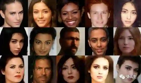 谷歌公司的Berthelot等[25]提出了BEGAN,即边界均衡GAN。这项工作针对GAN训练难、控制生成样本多样性难、平衡判别器和生成器收敛难等问题,提出了改善方法。它借鉴EBGAN (Energy-Based Generative Adversarial Networks)[26]和WGAN (Wasserstein GAN)[27]各自的优点,使用简单的模型结构,在标准的训练步骤下取得令人满意的效果。传统的GAN试图直接匹配数据分布,而BEGAN致力于匹配自编码器损失的分布。该方法为典型的GAN目标函数增加一个均衡项,平衡判别器和生成器。不仅如此,文献[25]还提出一个可以衡量收敛的超参数,实现了快速稳定的训练和很高的视觉质量。BEGAN 能够生成128×128的高质量人脸图像,包含多样化的姿态、表情、性别、肤色、光照射、胡须等特征,如图7所示。