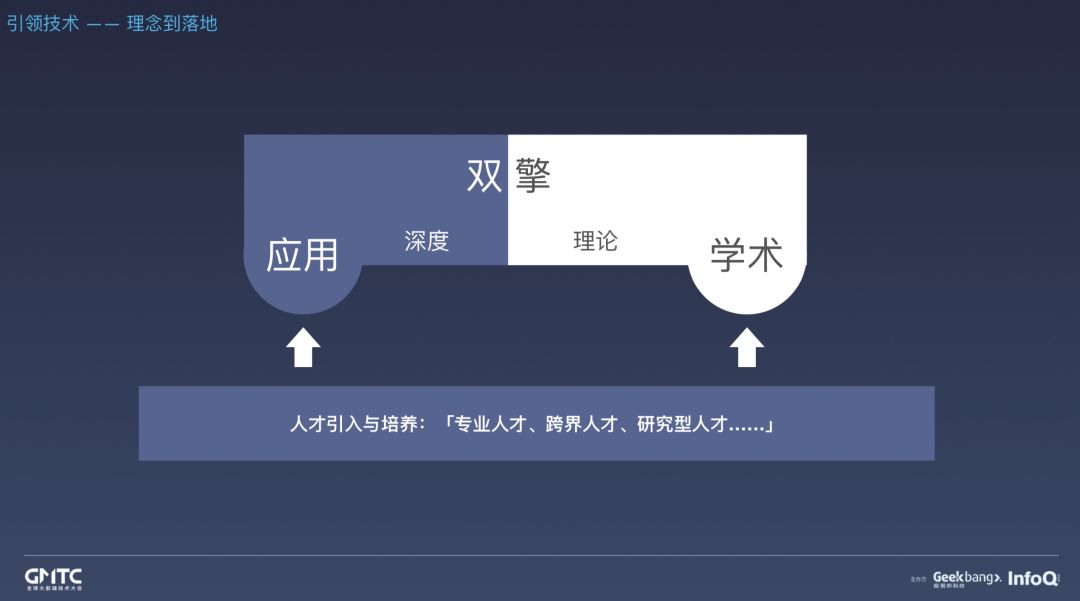 第二学术人才加入,我们需要通过学术化探讨加入更多新理论进来,通过这两个双引擎,能够把我们前面提到的理念落到技术,这是整个国内目前很缺失的部分,也是我今天认为最需要改变的部分。