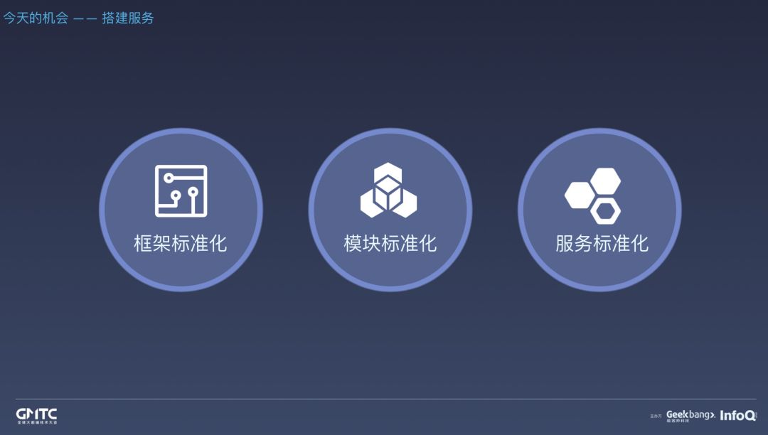 在消费端体系里面,我们也在做很多尝试,比如说原来的频道活动,在活动的体系里面也是高度抽象化的,所以在这个体系里面,我们可以看到整个搭建服务无论是在中后台还是整个无线端,以及 PC 端都有大量场景,这样大量场景需要把整个框架标准化,希望把里面的元件、组件以及模块标准化,还希望把这样的服务能够服务于今天所有无论是中后台也好,C 端页面也好,希望有这样的体系——服务化标准化的方式服务,打通整个体系,这就是为什么把搭建服务认为是面向未来最重要的方向。