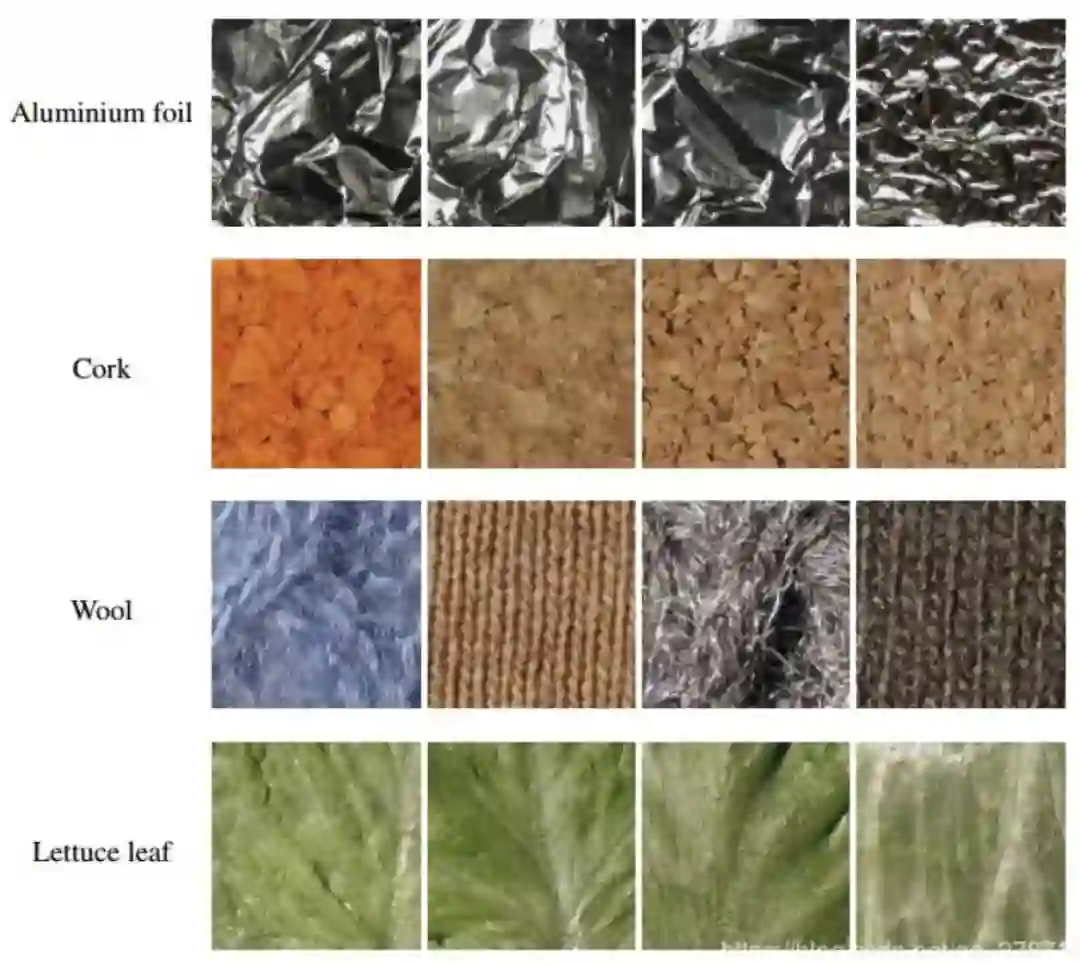 KTH-TIPS 是一个纹理图像数据集,在不同的光照、角度和尺度下拍摄的不同材质表面纹理图片。类型包括砂纸、铝箔、发泡胶、海绵、灯芯绒、亚麻、棉、黑面包、橙皮和饼干共10类。