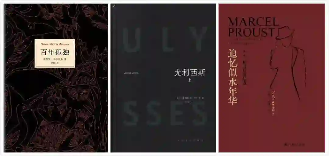 《百年孤独》(马尔克斯)、《尤利西斯》(乔伊斯)、《追忆似水年华》(普鲁斯特)