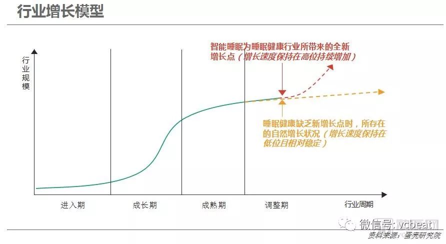 低增长预测代表着,基于往年数据,以睡眠质量健康为主的传统产品及升级产品,获得市场稳定需求,所呈现的增长率逐渐降低的规模预测。