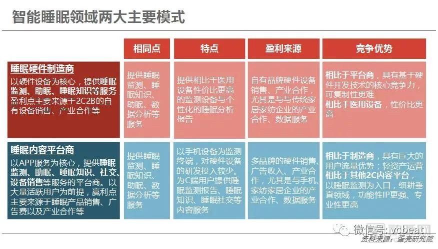 前者以自有品牌硬件设备的销售为核心,基于APP的睡眠报告、睡眠知识是提高产品附加值的服务。