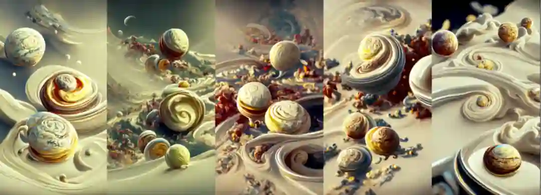 (4~8) A scenic view of the planets rotating through chantilly cream by Ernst Haeckel and Pixar trending on Artstation, 4k wallpaper.