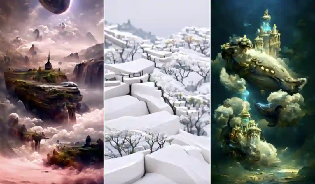 Stable Diffusion [10, 12] 展现了比 Disco Diffusion [11] 更加高效且稳定的创作能力,尤其是在“物”的刻画上更加突出。下图是笔者利用 Stable Diffusion,根据文本创作的 AI 绘画作品: