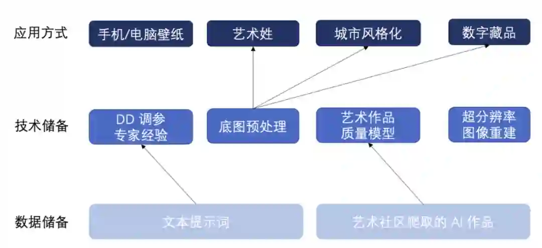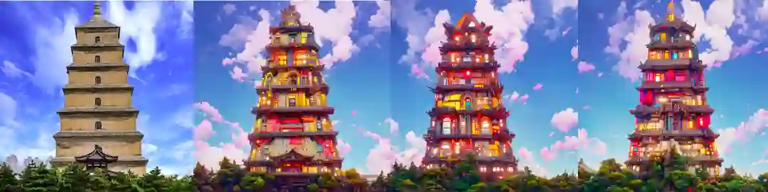 利用这些数据与技术储备,我们已经积累了手机/电脑壁纸、艺术姓/名、地标城市风格化、数字藏品等多模态图像生成应用方式。下面我们将展示具体的 AI 生成艺术作品。