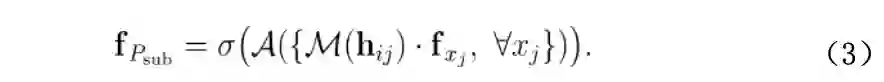 其中映射函数 M 的目标是从几何先验中学习一个高维的、有表现力的关系表达,以编码 3D 点集的空间布局,这里我们使用共享的多层感知器(MLP)实现映射函数 M。以这种方式,wj 巧妙地转换为 wij,它的梯度由预定义的几何先验 hij 决定,且与点 xi 和 xj 均几何相关。于是,公式(1)中的 f Psub 变为: